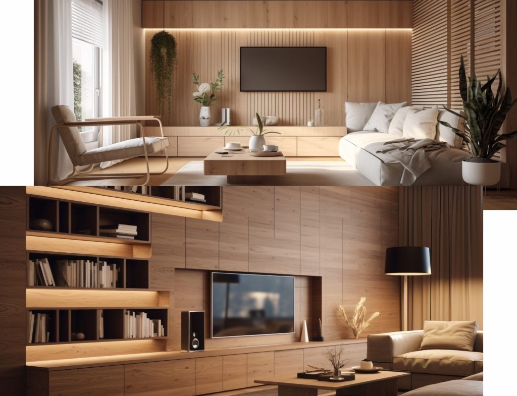 Painéis de TV, racks, estantes, nichos e armários personalizados.